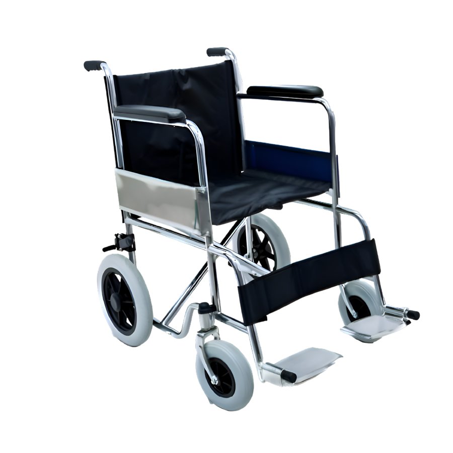 Silla de ruedas de paseo de estructura cromada